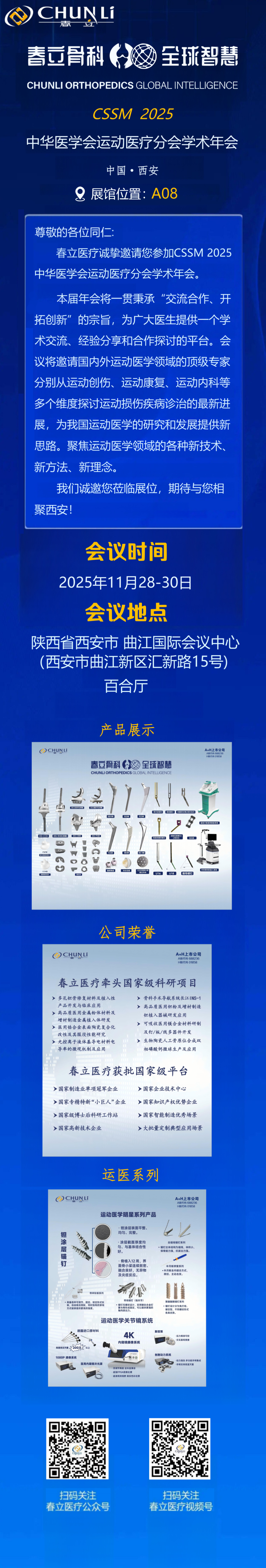 The 2025 CSSM grand opening, Chunli Medical cordially invites you to visit Booth A08 and join the annual sports medicine event!