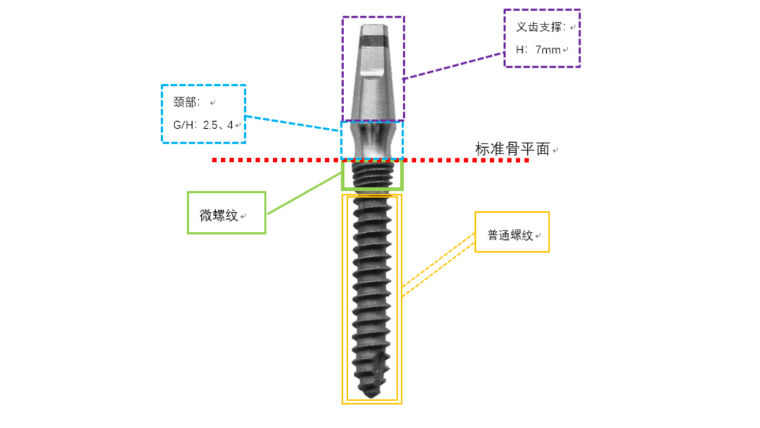 · The upper end of the dental implant serves as the denture support area, with a smooth surface, and the denture support height is 7mm.