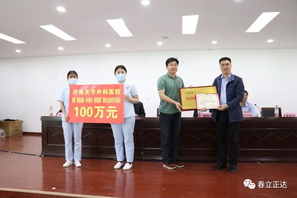 On site, the caring enterprise donated 1 million yuan as a special fund to Jinan Disabled Persons' Welfare Foundation, earmarked for joint replacement surgeries of osteoarticular disease patients such as those with femoral head necrosis and knee arthritis. Ge Zhongming, Chairman of the Foundation, accepted the donation and awarded the enterprise a donation certificate and plaque.