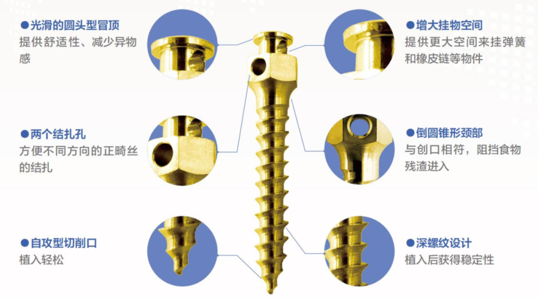 Made of titanium alloy, it is available in a range of diameters and lengths. In clinical practice, the appropriate size is selected based on the implantation site and intended function. It features the advantages of simple operation, minimal trauma, reduced patient discomfort and excellent clinical efficacy.