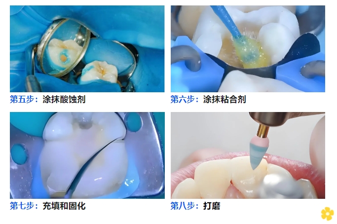 7.Filling and Curing of Dental Polymer-based Composite Resin: Fill the cavity with the resin and perform light curing (with irradiation time adjusted based on cavity depth).